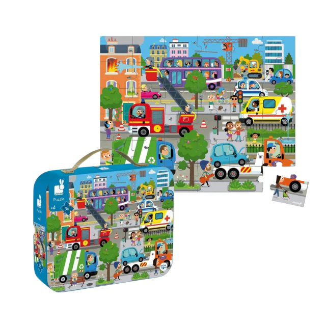Get ready for a fun-filled adventure on the road with this 36-piece jigsaw puzzle! Featuring a bustling roadway packed with all kinds of vehicles, from cars to helicopters, this vibrant and exciting puzzle is sure to captivate young minds. 🚁🛣️