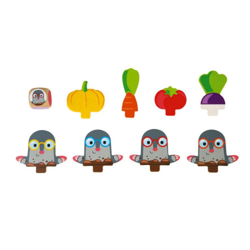 🥬The goal of the game? Be the first to fill your basket with 4 different vegetables, but watch out for the mischievous mole who might pop up to make a burrow!