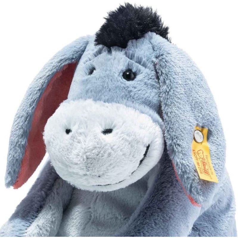 Thanks to bean bags in his arms, legs, and bottom, Eeyore can sit comfortably and is a joy to hold. Complete with Steiff's iconic "Button in Ear" as a symbol of quality and authenticity, he’s the perfect companion for your little ones!