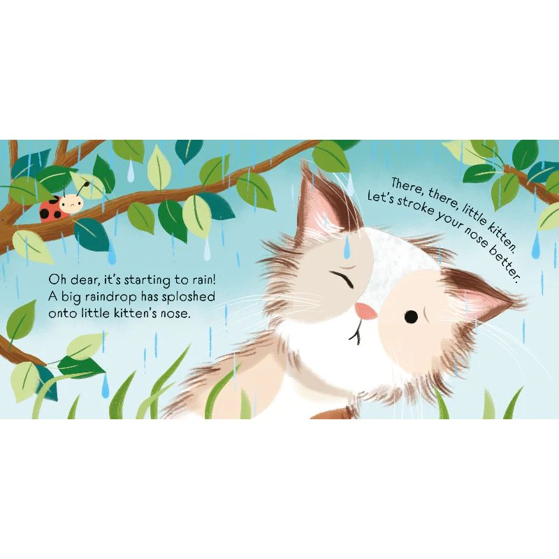 Help take care of a sweet, snuggly kitten in this adorable touchy-feely book! Tickle under its chin when it’s lonely, stroke its back after a little fright, and rub its paw better if it steps in a cold puddle. When your kitten is safe and warm, don’t forget a gentle tummy tickle!✨