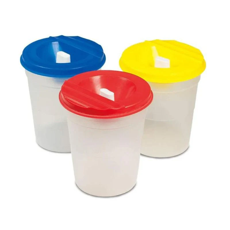 Introducing our set of three non-spill paint pots, specially designed for young artists! 🎨 These pots come with lids and stoppers, making them perfect for use with paints and water. When filled to the center line, you don't have to worry about spills if the pot is accidentally tipped over. 🌈